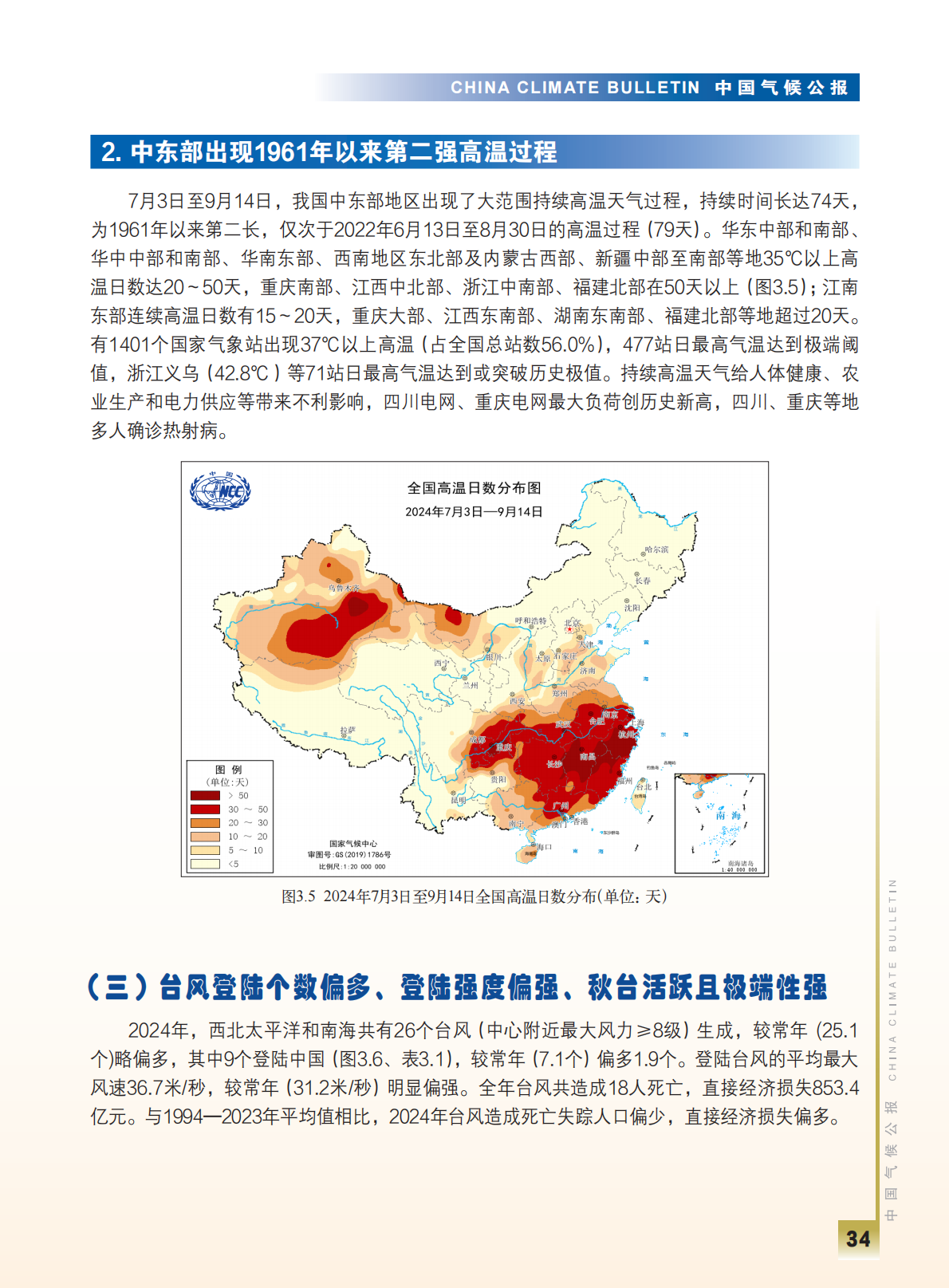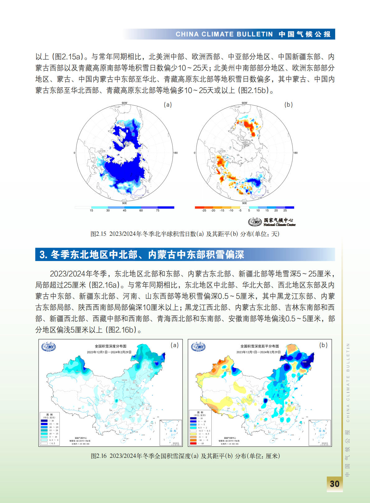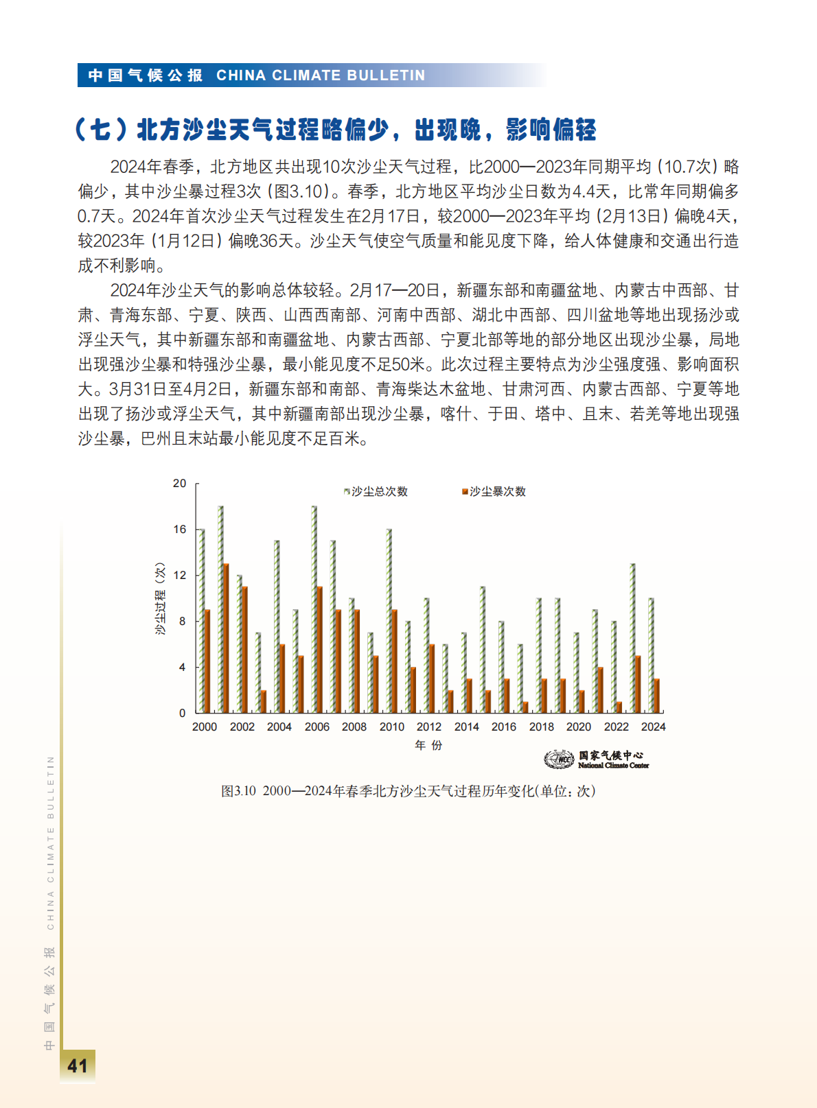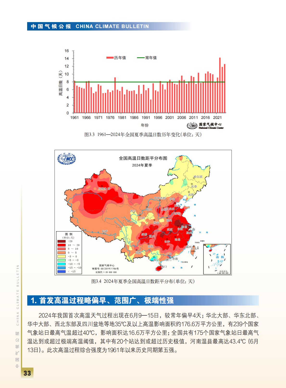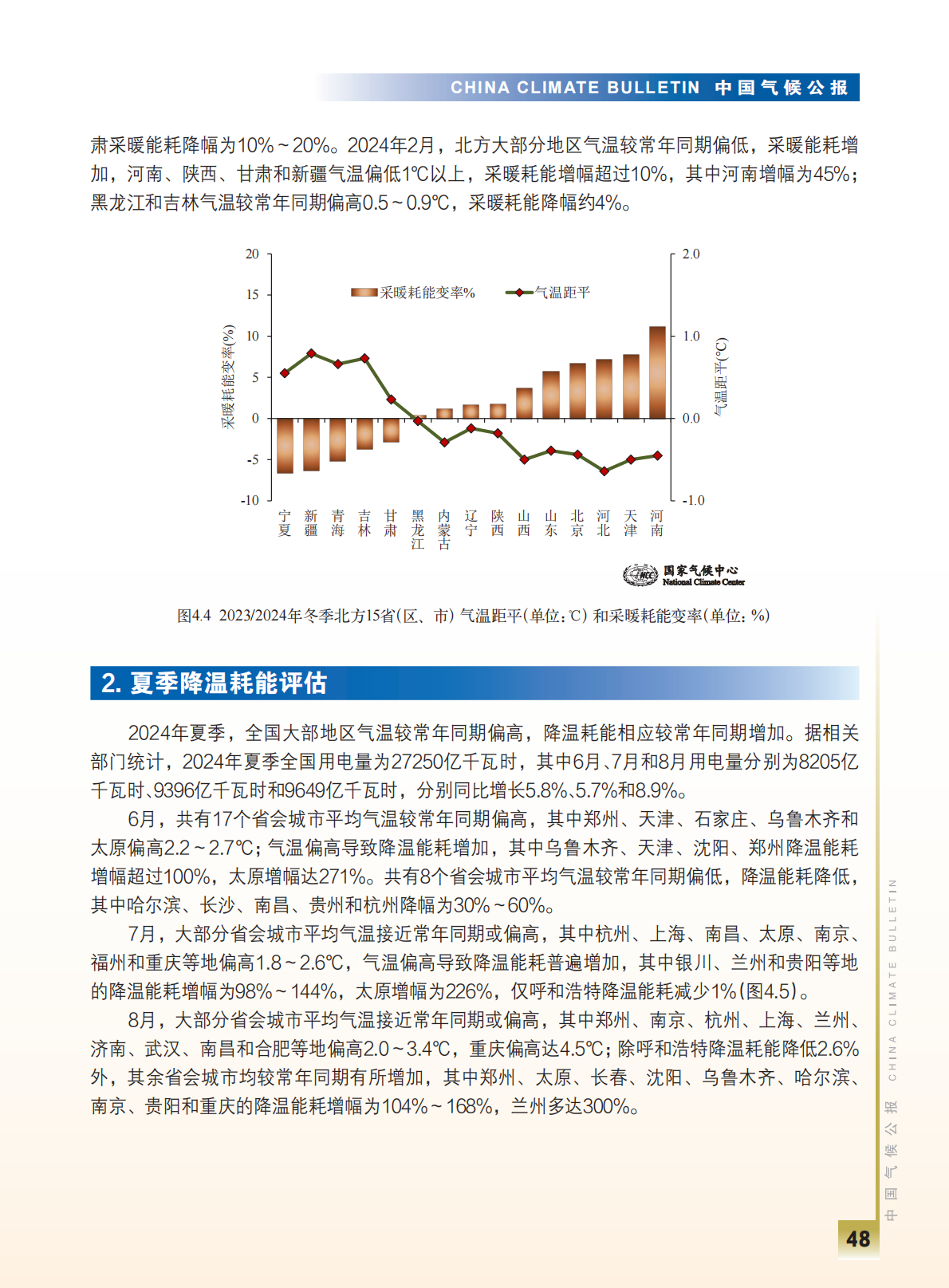 为了更好地了解中国气候,全面反映中国在气候系统监测、气候影响评估、气候服务应用等方面的新成果、新进展,中国气象局国家气候中心组织30余位专家编写了《中国气候公报(2024)》。公报内容分为五章,分别从基本气候概况、气候系统监测、主要气象灾害和极端天气气候事件、气候影响评估等方面提供中国气候的最新监测和评估信息,可为各级政府制定气候相关政策提供科技支撑,并为开展国内外科研与技术交流以及气候科普宣传提供基础信息。