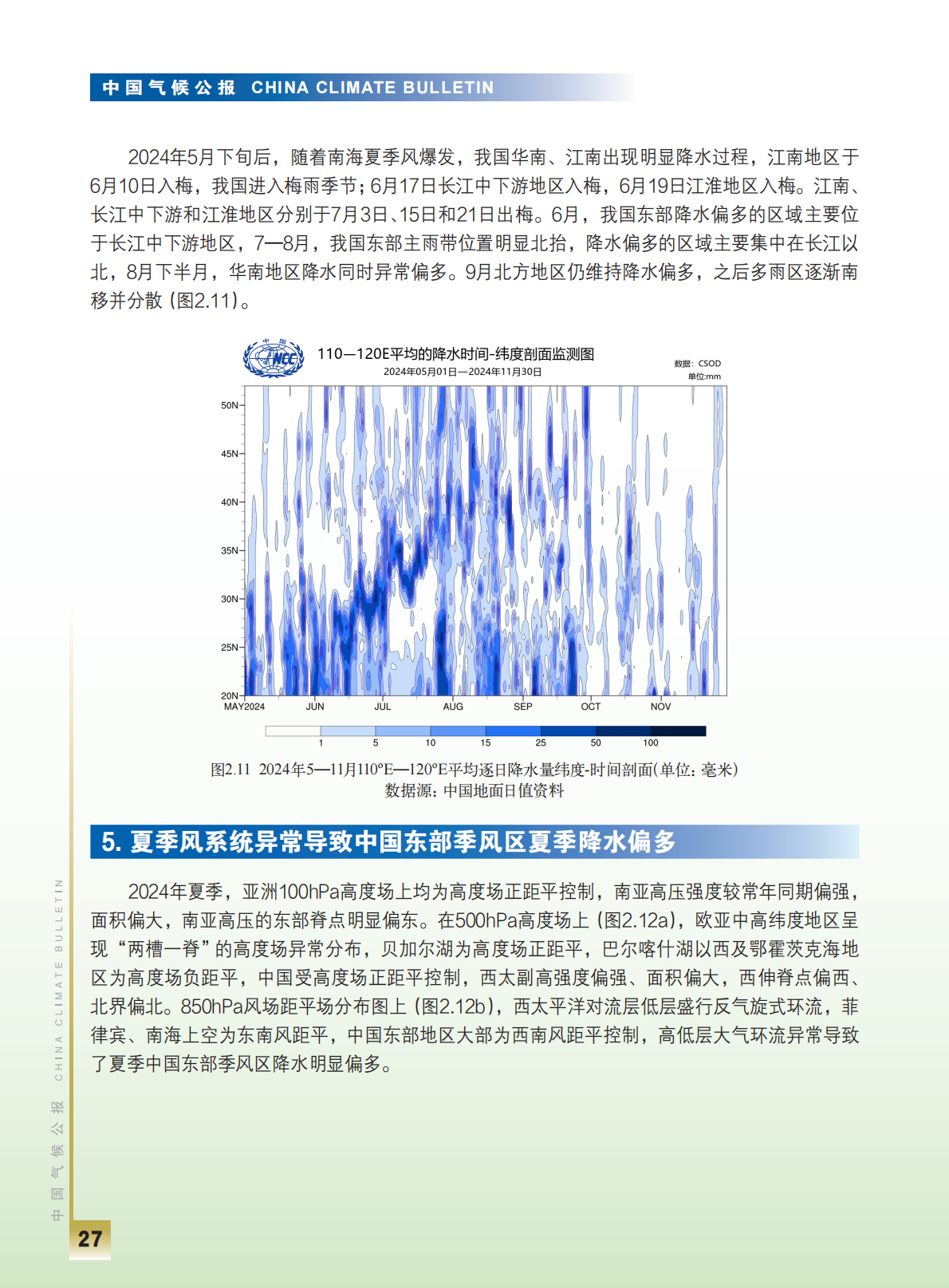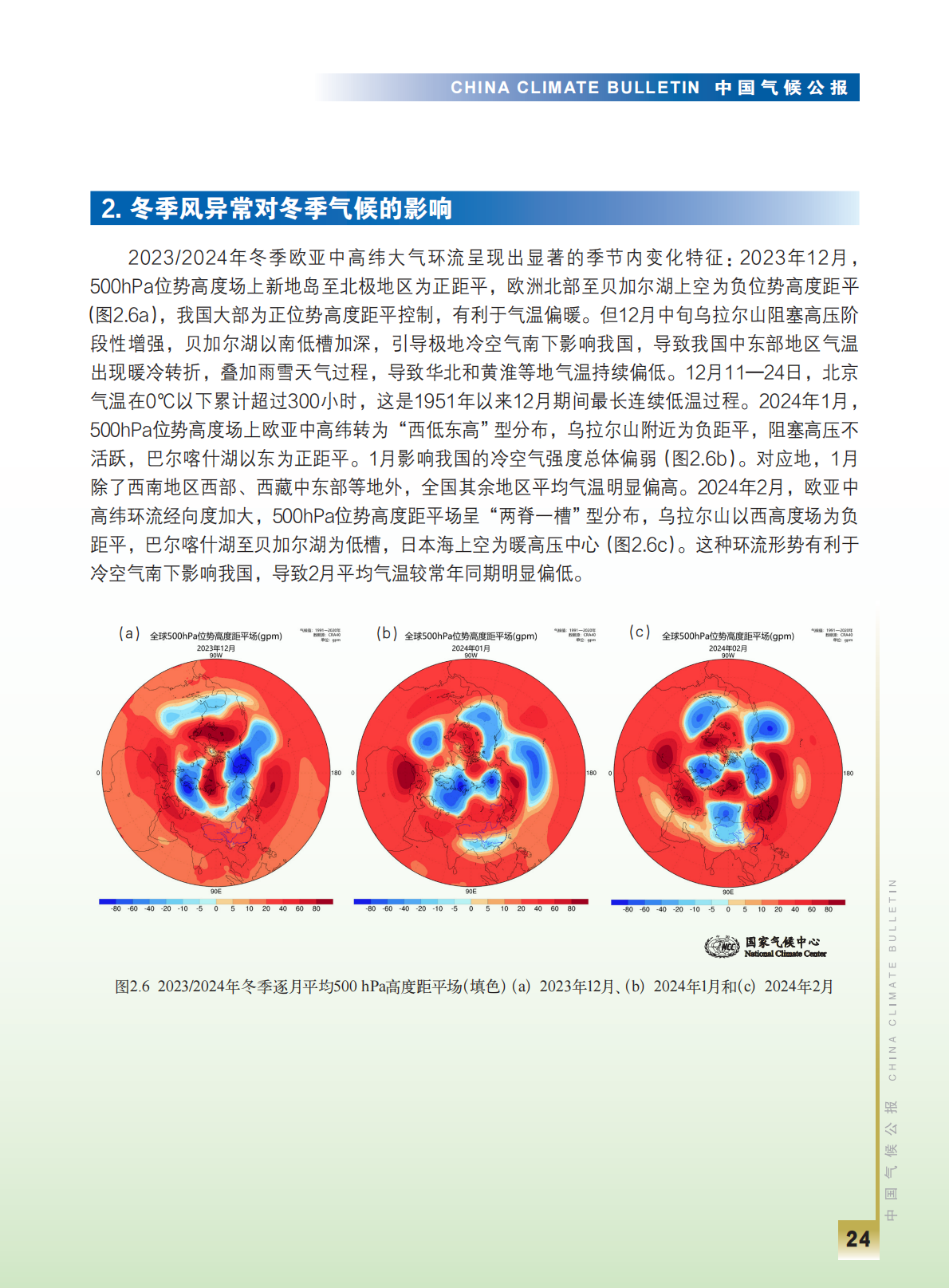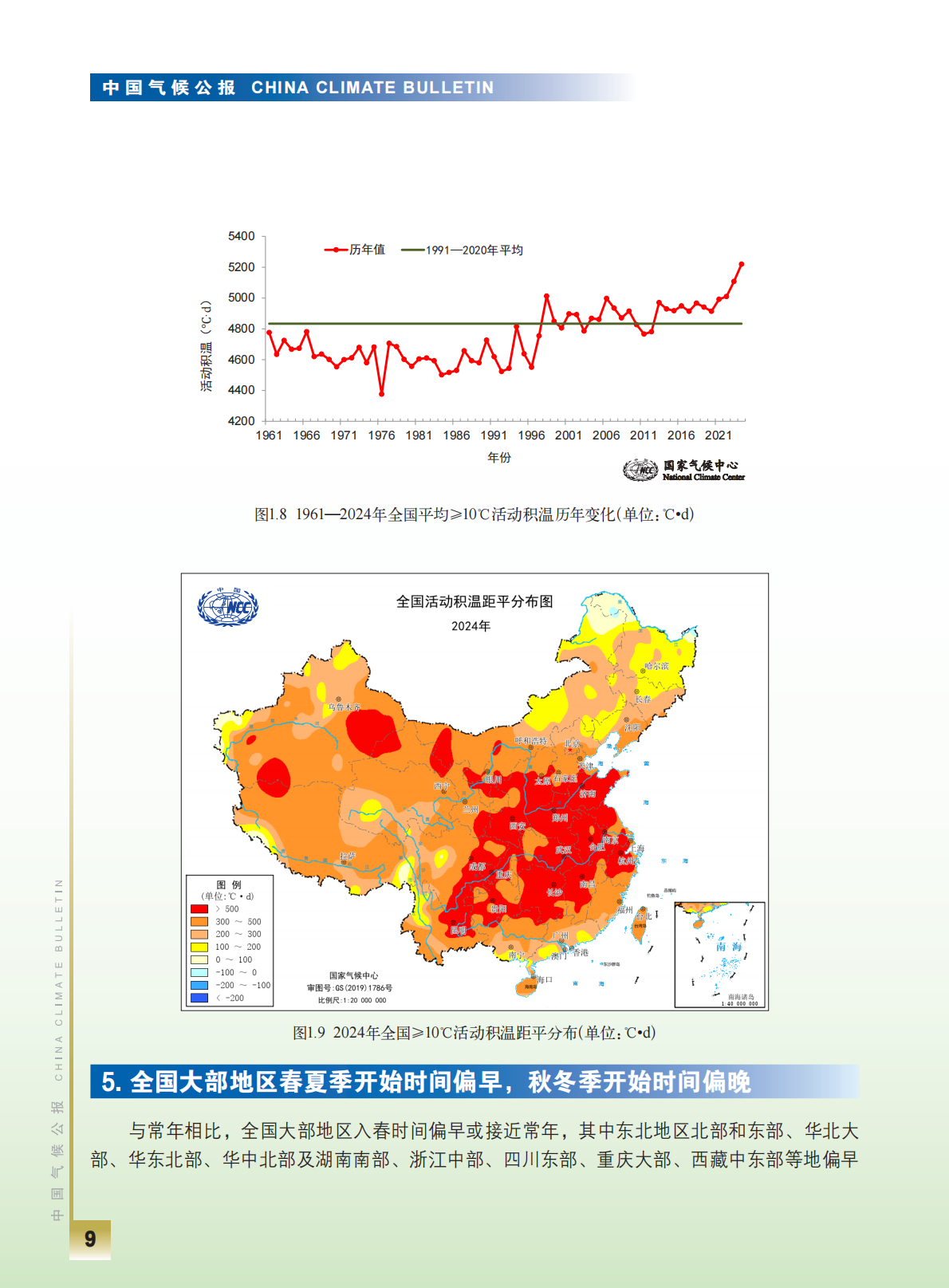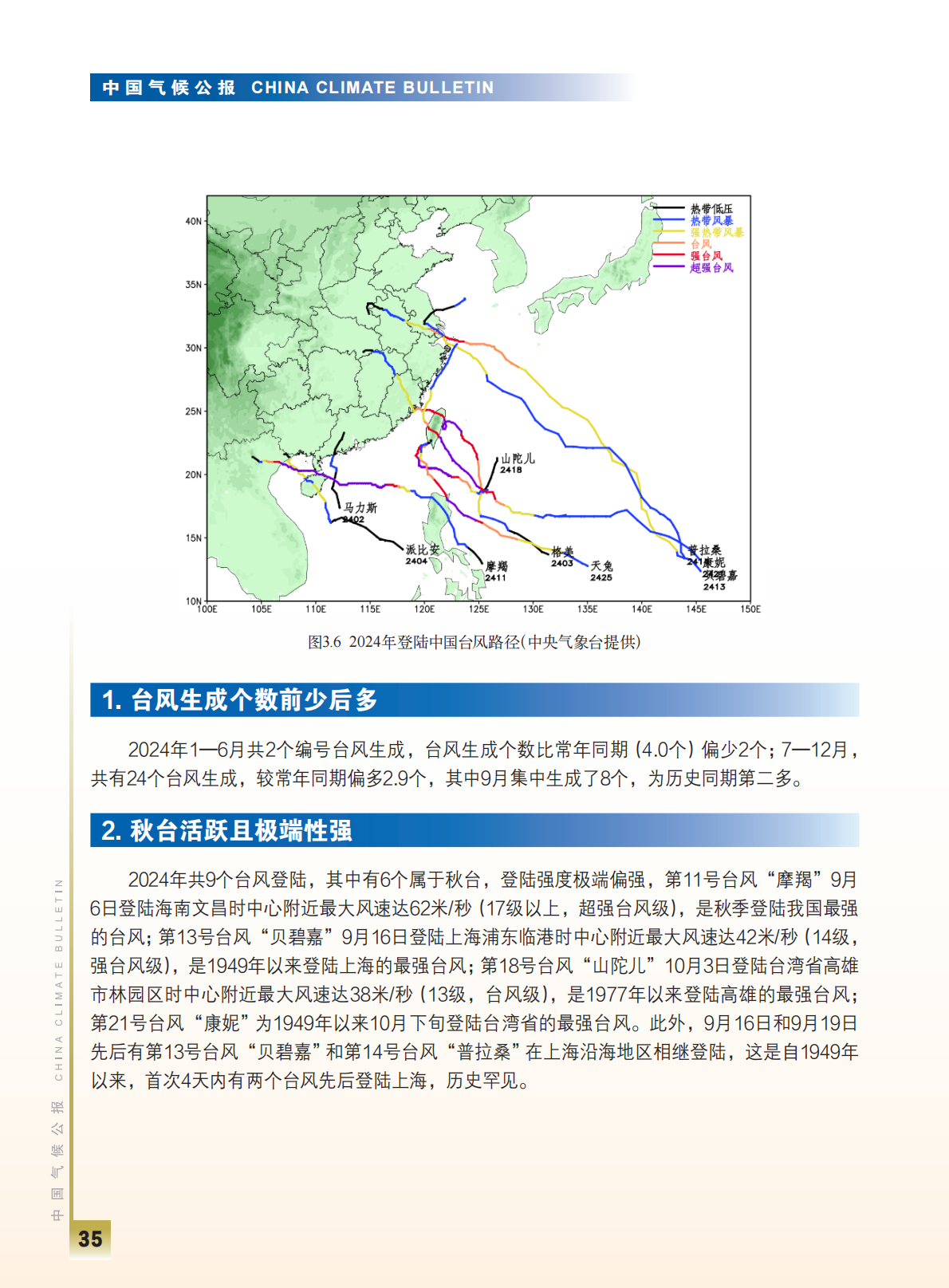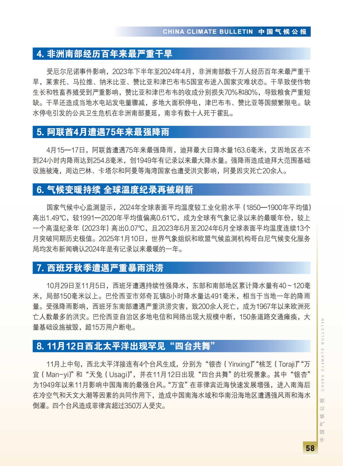 为了更好地了解中国气候,全面反映中国在气候系统监测、气候影响评估、气候服务应用等方面的新成果、新进展,中国气象局国家气候中心组织30余位专家编写了《中国气候公报(2024)》。公报内容分为五章,分别从基本气候概况、气候系统监测、主要气象灾害和极端天气气候事件、气候影响评估等方面提供中国气候的最新监测和评估信息,可为各级政府制定气候相关政策提供科技支撑,并为开展国内外科研与技术交流以及气候科普宣传提供基础信息。