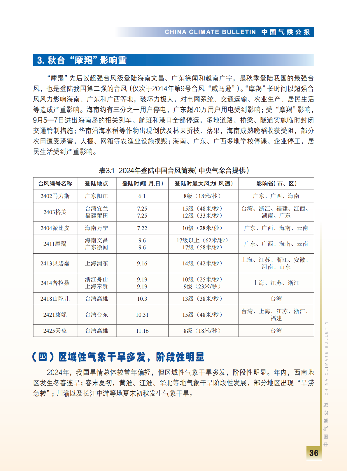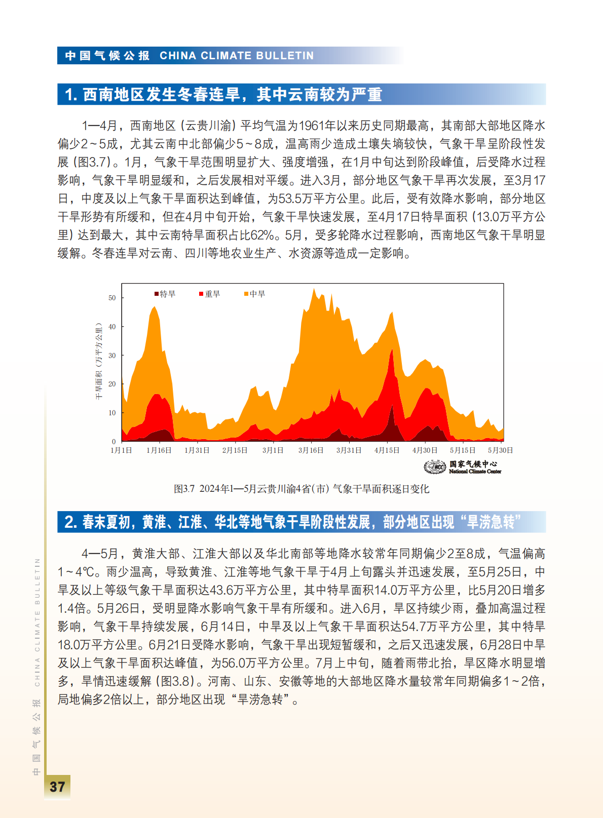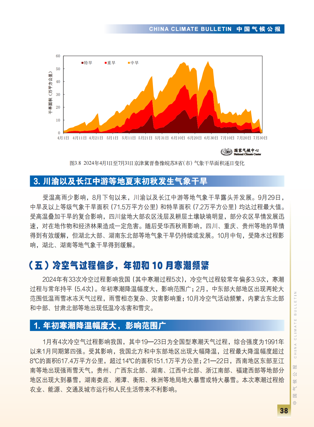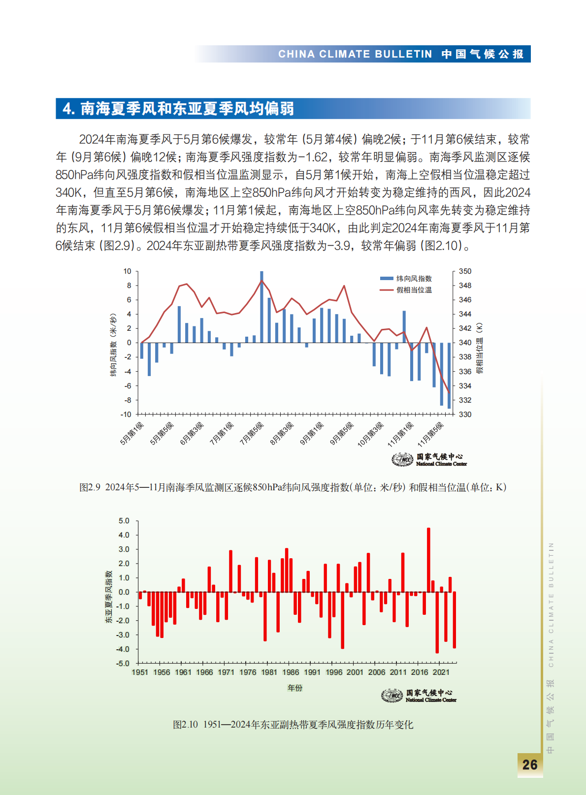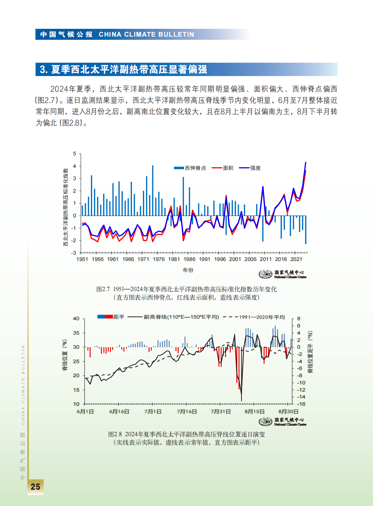 为了更好地了解中国气候,全面反映中国在气候系统监测、气候影响评估、气候服务应用等方面的新成果、新进展,中国气象局国家气候中心组织30余位专家编写了《中国气候公报(2024)》。公报内容分为五章,分别从基本气候概况、气候系统监测、主要气象灾害和极端天气气候事件、气候影响评估等方面提供中国气候的最新监测和评估信息,可为各级政府制定气候相关政策提供科技支撑,并为开展国内外科研与技术交流以及气候科普宣传提供基础信息。