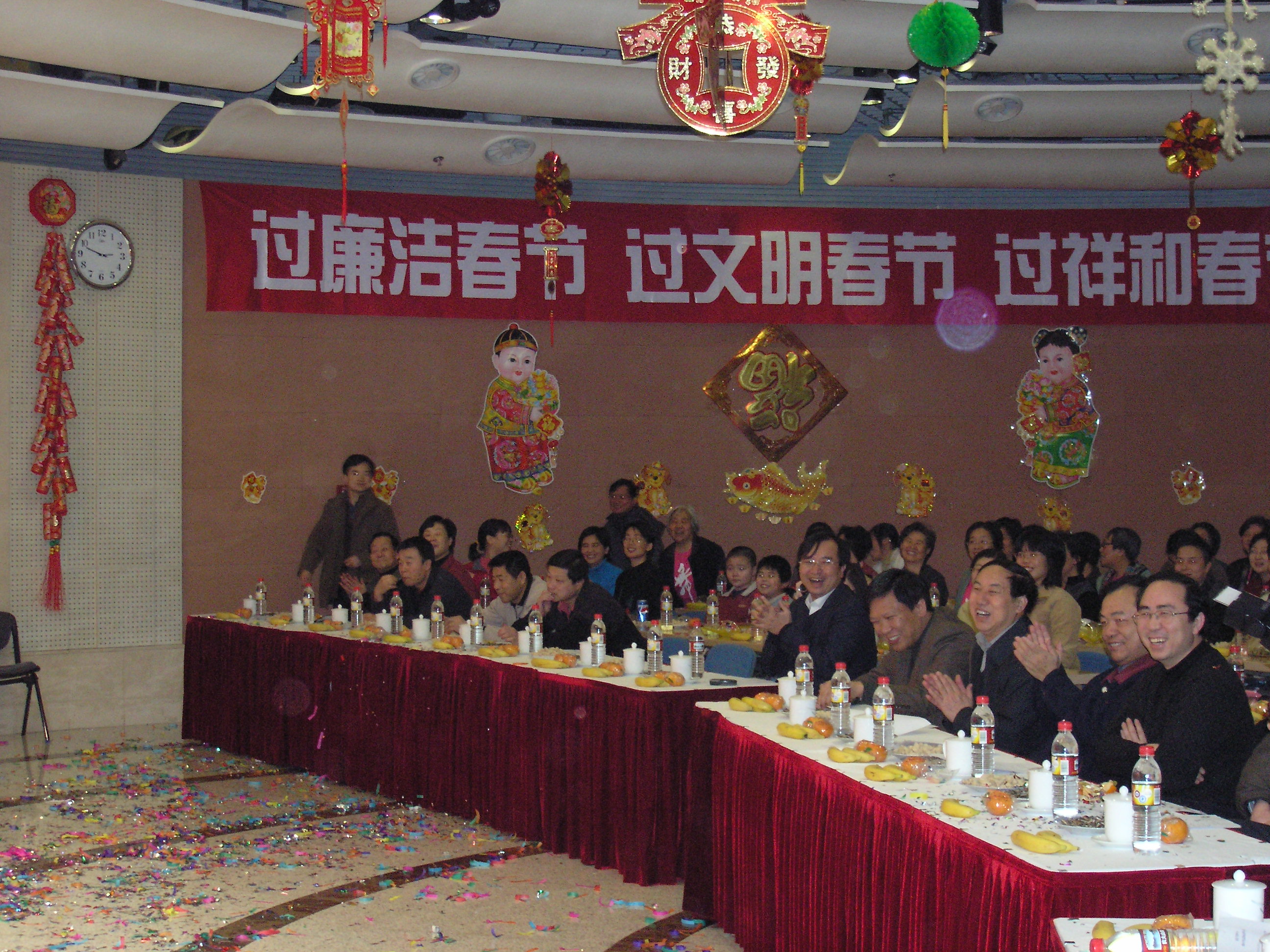 2006年元月19日下午,一曲“开门红”拉开了国家气候中心迎新春联欢会的序幕。张灯结彩、喜气洋洋的联欢会会场,大红幕布上镶嵌着的散发着喜气、福气大福字,欢声笑语、满脸春色的来宾,使整个会场弥漫着浓郁的节日气氛,国家气中心董文杰主任首先代表领导班子和党委向大家拜年,感谢国家气候中心全体员工在过去的一年中为气候中心的事业和发展所做出的成绩和贡献,希望在新的一年里做出更大的成绩。大家欢聚一堂,喜迎新春佳节。