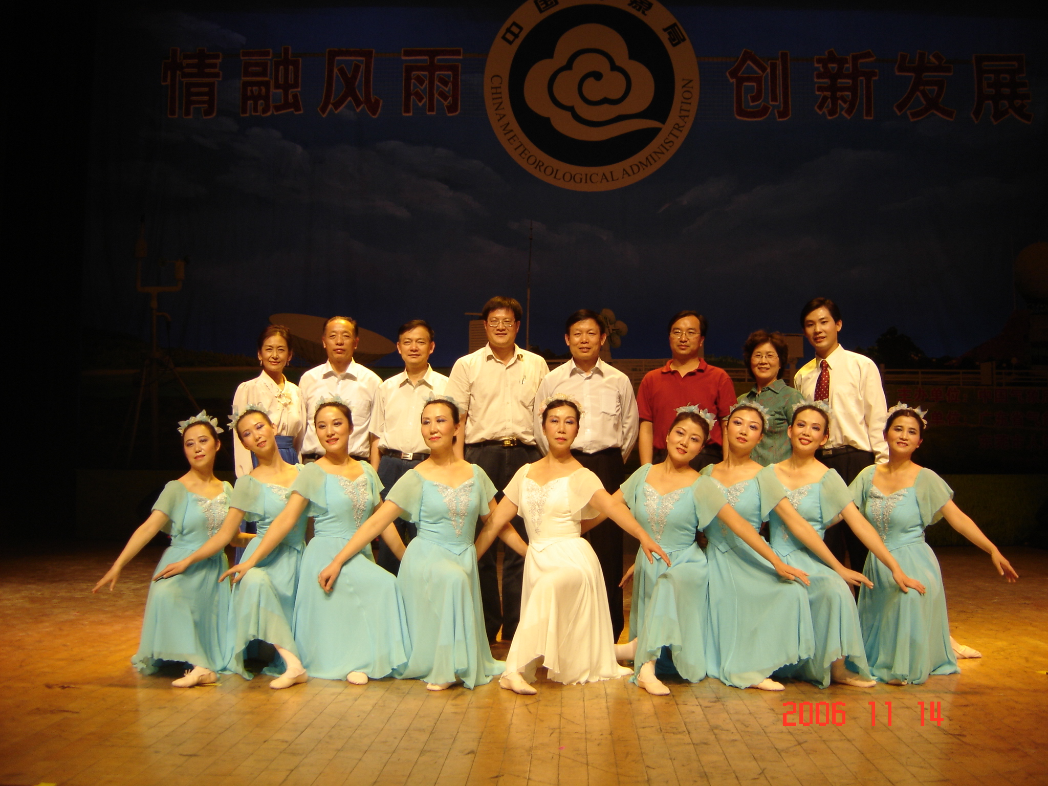 11月13日—15日来自全国各省、自治区、直辖市气象局,计划单列市气象局,中国气象局各直属单位,南京信息工程大学、成都信息工程学院、新疆生产建设兵团、民航华东空管局等49个单位的领导及演职人员近600人在美丽的南国名城——东莞市参加了由中国气象局主办,广东省气象局和东莞市政府联合承办为期三天的以“情融风雨,创新发展”为主题的“华风奖”全国气象行业首届文艺汇演。我中心的张雁、刘一鸣、艾婉秀、宋文玲、柳艳香、苗秋菊、张莉、杨明珠、孙源、刘慰心等十位同志由游有源副书记和党办主任石炜三同志带队,带着苦练了三个多月的参赛节目《我们的梦》代表国家气候中心参加了汇演,董文杰主任亲临演出现场进行指导,并观看了演出。