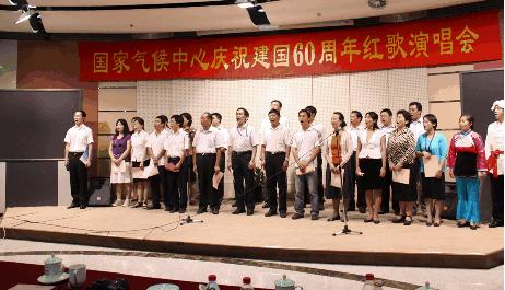 近两个多月来,随着建国60周年大庆的临近,下班后,在科技大楼经常飘扬着爱国歌曲的优美旋律,这是国家气候中心各单位在进行迎国庆红歌演唱会的排练。早在6月份,国家气候中心党委办公室、工会就向中心各单位发出了举行红歌演唱会的通知,各单位非常重视,认真选择曲目,并在紧张繁忙的业务科研工作之余,抽出时间组织大家积极认真排练。