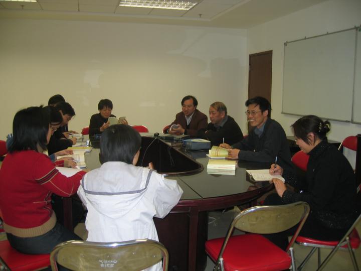 董文杰主任和支部党员一起讨论